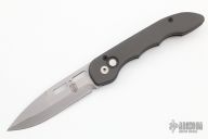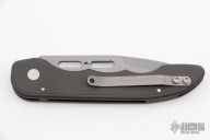 This Gypsy Auto by Rob Dalton has a bead blasted spear point blade. Handle is grey anodized aluminum with titanium tip up clip. Excellent condition. #81718
