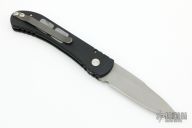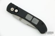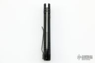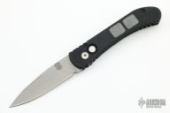 This Guardian Angel Auto by Rob Dalton has a bead blasted drop point blade. Handle is black anodized aluminum with rubber inlays and a titanium tip up clip. Has a few light scuffs, otherwise excellent condition. #1427