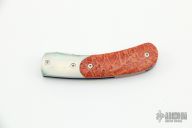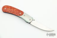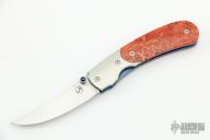 This Persian linerlock folder is a limited edition and is #10 of 99. The knife has a hand rub satin finished blade with a single thumbstud with paua shell inlay. The handle has satin titanium bolsters, apple coral scales, anodized titanium liners and backspacer with lanyard pin. Includes pouch. Has a few light scratches, otherwise excellent condition. Comes with original box and papers.