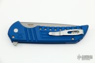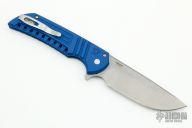 This Mordax by Pro-Tech is a Ferrum Forge design that was produced trough MassDrop. It features a stonewashed blade with flipper. The handle has a blue milled aluminum frame with tip up stainless steel clip. Comes with original box and papers. Excellent condition.