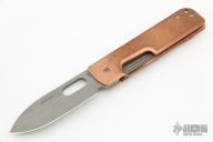 This Lancer was designed by Serge Panchenko and made by Boker. The knife features a stonewashed drop point blade. The handle has a copper frame with a stonewashed titanium tip up pocket clip and liner. Excellent Condition.
