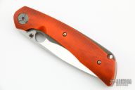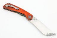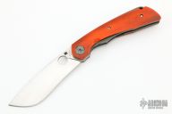 The Nati Amor designed Spyderco Subvert is a large folding knife revealed at Spyderco's 2018 Amsterdam Meet. This folder sports a clean, balanced aesthetic based on Nati's handmade Sabotage custom. It features orange G-10 scales over thick bead blasted titanium liners. Its blade has a satin finish, high flat grind, and a generously bellied edge. Add a unique Nati Amor design to your collection today! Features: A heavy-duty titanium liner lock offers dependable blade lock up. Stainless steel clip for tip-up pocket carry. 3D stained G-10 handle scales provide a secure and comfortable grip. Has a brushed clip. Comes with original box, papers. Excellent Condition.