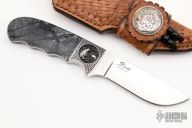 Bruce received his art training at Cal-State University at Los Angeles and is a graduate mechanical engineer. He started engraving in 1978 and has been engraving full time since 1984. Bruce spends around 60 hours of engraving time on each knife.