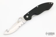 "Ed Scott is a custom knifemaker and avid hunter living in South Africa. He consulted with numerous professional hunters searching for the perfect hunting knife design. After many prototypes he developed the Impala. Spyderco has unveiled two versions of the Impala: both have black G-10 handles that are comfortably sculpted and champhered to be easy on the hand during extended or difficult cutting. One version has a gut hook (double beveled and sharpened on both sides of the inside radius) positioned at the blade’s tip that vanishes fully into the contours of the handle when the knife folds closed. The second Impala is snubbed-nosed, muscled thick at the tip, and textured with furrows atop the tip’s spine and again behind the round hole. The texture creates a positioning point for the index finger focusing control over intricate cuts or caping. Both have blades 3 11/16” (94mm) long of VG-10 high carbon stainless steel that lock open with a Walker linerlock. Positioned for tip-down pocket carry, the clothing clip sits nested in a shallow crater milled out of the G-10 handle. The crater creates a lower profile for comfortable use. Principally designed for field use, a lanyard hole at the butt-end accepts a thong or lanyard cord, secondarily attaching the knife for the outdoorsman who misplaces knives in tall grass or around water."