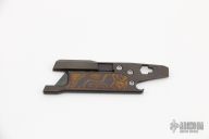 This Rexford RUT (Rexford Utility Tool) from Todd Rexford is a TAD Gear edition, it uses a standard utility razor blade. Blade can easily be replaced. This piece features a functional lanyard hole. Flat head screwdriver/pry tip, and bottle opener. Has some light scuffs, excellent condition otherwise.