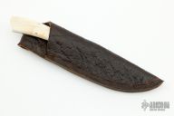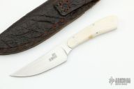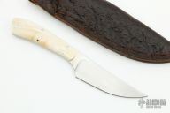 This knife by Arno Bernard features a hand rub satin finished blade, .097" blade stock and .778" blade depth, full tapered tang construction. The handle has warthog tusk scales. Comes with a brown leather sheath. Excellent condition.