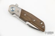 Add some style to your EDC rotation with the Clap from MKM Knives. This Clap model is outfitted with a satin finished blade and a green canvas micarta handle with titanium bolsters. MKM worked with designer Bob Terzuola to bring you this sleek EDC flipper. It's built with stainless steel liners and a titanium spacer and pocket clip. The blade offers a compound grind and versatile deployment with dual fullers and a removable flipper. Upgrade your EDC with the MKM Clap.