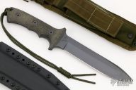"This knife is known to the U.S. Army Special Forces as "The Yarborough" and to everyone else as "The Green Beret Knife". It is a no-nonsense, hardworking tool, designed by renowned knife maker and designer Bill Harsey, with function and manufacturing input from Chris Reeve. Made in Boise, Idaho by Chris Reeve Knives, the Green Beret Knife is a using knife that, just like the men for whom it was designed, is efficient, tough and uncompromising." Includes a green Black Hawk Sheath and a custom kydex sheath from C4 Industries. Excellent condition.