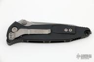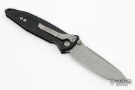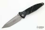 This Socom Elite from Microtech has an Apocalyptic finished tanto blade with dual thumbstuds and notched thumbrest. The handle has a black aluminum frame with non-slip rubber inserts and a tip down stainless steel clip. Dated 10/2022 and S/N 10930. Includes a original box and paperwork. New condition.