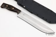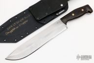 This Dan Keffeler Competition Chopper by LT Wright features a satin finished blade with .251" blade stock and 1.906" blade depth, full tang construction. The handle has canvas micarta scales. Comes with a kydex sheath and zippered case. Has a few light scratches, otherwise excellent condition.