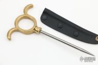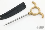 This SOE Ring Spike by GHK features a differentially hardened Stubbs Tool Steel tool steel spike with .210" diameter. The handle is high tensile manganese bronze. Comes with a kydex sheath. New from maker.