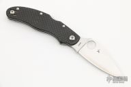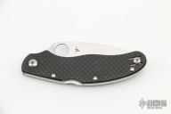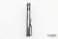 This Caly 3 features a satin finished 420J2 Steel with ZDP-189 core blade with a thumb-hole and notched thumb and index finger rests. The handle has carbon fiber scales, and stainless steel liners, back-spacer and pocket clip. Clip is tip up and is right or left handed reversible. Has scuffs and scratches. Good user condition.