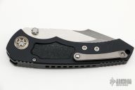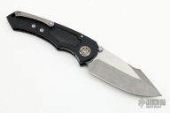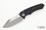 This D/A Pariah Auto by Heretic Knives features a two-tone battleworn blade with notched thumbrest and dual thumbstuds. The handle has a black aluminum frame with non-slip inserts, flamed titanium pivot collars and a tip up clip with ceramic ball. Comes with original box. New condition. Serial Number 00400 dated 01/2022