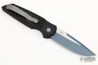 This TR-3 X1 by Pro-Tech Knives features a blue cerakote spear point blade with satin flats. The handle has a black aluminum handle, tip up bead blast finish stainless steel clip. Includes the original box and papers. Excellent condition.