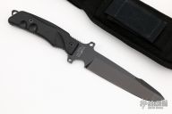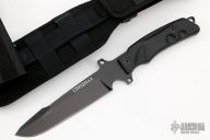 This Spetnatz by Fox Cutlery features a black blade with notched thumbrest, .244" blade stock and 1.366" blade depth, hidden tang construction with composit grip. Comes with roiginal box, sheath and papers. Excellent codition.