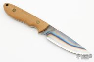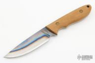 This Pine Creek Utility Hunter by Master Smith Jerry Lairson Sr. of Pine Creek Forge features a hand rub satin finished drop point blade with temper color hamon, .182" blade stock and 1.309" blade depth, full tang construction. The handle has textured wood scales with brass pins. Comes with a zippered case. Has a few light scratches, otherwise excellent condition.