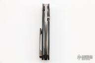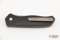 This linerlock by Zander Knives features a satin finished blade with a single thumbstud. The handle features carbon fiber scales over titanium liners with an anodized tip up titanium pocket clip.  Includes a padded zippered case.  Excellent Condition.