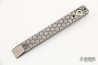 This Honey Comb Titanium Prybar features a satin finished with an anodized milling pattern with a matching pocket clip. Has some scuffs and scratches, otherwise good condition.