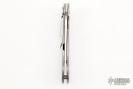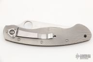 The Military folder from Spyderco has been in production since the 1990s in a variety of steels, materials and colors. This framelock Military folder has a satin finish S30V blade and a fluted and anodized titanium frame. Blade choil and thumbrest are jimped for better control. The oversized blade hole makes opening a natural and smooth action even if wearing gloves. Tip down carry. Has a few light scuffs, otherwise excellent condition.