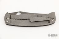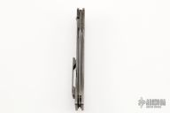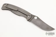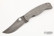 This K-2 Folder by Spyderco is a Farid Design, it features an acid washed clip point CPM 10V blade with thumbhole. The handle has a tumble finished titanium frame with a tip up or down stainless steel clip, lanyard hole at the butt. Nice detent, lockup and blade seating. Has some scuffs and patina, otherwise good condition.
