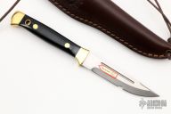The fixed blade falconry knife from PUMA can be used for all work during the hunt. It is extremely handy, the black micarta handle scales are attached with brass rivets. The front and top jaws are also made of brass. We deliver the falknersheil II including a high quality leather sheath.