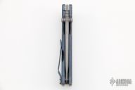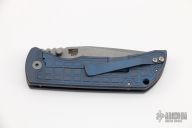 This MAC2 features a stonewashed drop point Magnacut blade with dual thumbstuds and a notched thumbrest. The handle features a blue atomic FRAG titanium frame with a matching tip up pocket clip. New from Maker!
