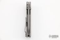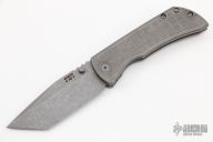 This MAC2 features a stonewashed tanto Magnacut blade with dual thumbstuds and a notched thumbrest. The handle features a stonewashed atomic FRAG titanium frame with a matching tip up pocket clip. New from Maker!