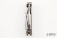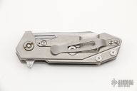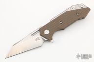 This Half Track from Hinderer Knives features a stonewash finished Magnacut blade with fullers, notched thumbrest and flipper. The handle has a stonewash finished titanium frame with a FDE G-10 scale. Titanium clip is positioned for tip up, right hand carry. Comes with original box and extra hardware. New condition.