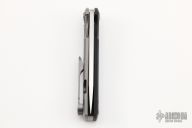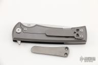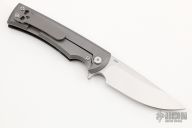 This Chaves Liberation features a satin finished drop point blade with the Chaves logo and dual thumbstuds. The handle is composed of black G-10 and stonewashed titanium with a matching tip up titanium pocket clip. Comes with original box and extra clip. Excellent condition.