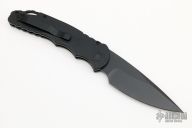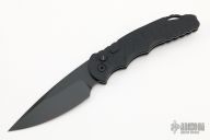 This Tactical Response TR-4.3 Operator Series features a black anodized aluminum body, which provides good traction and looks great. The blade is black finished 154-CM stainless steel with a plain cutting edge. The TR-4.3 is a knife that won't let you down. It fires hard, locks up like a rock, and feels great in hand. The slim design sits comfortably for tip-up pocket carry. Tritium is inset into the firing button, adding a unique and awesome flare to the piece. Comes with original box and papers. Excellent condition.