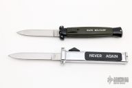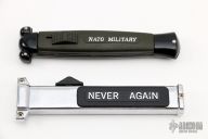 Included is a Never Again auto and a NATO MILITARY auto by The Edge Company. Has some light scratches, otherwise excellent condition.