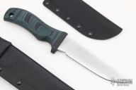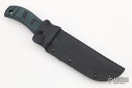 This is a Mad Dog Knives Bear Cat, an awesome EDC with 5-1/2" hard chromed blade made from 3/16" stock. VVTL blade finish (very visible temper line).  The black/green G-10 handle material is compression bonded to the hidden full tang and incredibly ergonomic. Includes a high ride Kydex sheath and a kydex slip sheath. Comes with zippered case. New condition.