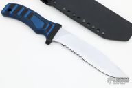 This ATAK 2 by MadDog Knives features a partially serrated blade. .250" stock. 1.475" blade depth. Selectively tempered, the knife has a Rockwell C-scale hardness of 62 at the edge (as hard as a file), and HRC 50-54 throughout the spine and hidden full tang. Hard chrome blade finish. Sterile blade. The handle is designed to be ergonomic and has the ability to withstand tremendous punishment with little or no damage. It is hard and tough enough to be used as an impact tool. Includes a ATAK Combat sheath. New condition. Comes with a zippered case.
