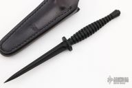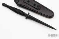 This Tommy Spike by Andrew Bawidamann is one piece construction made from titanium and coated black. Comes with a black leather sheath with clip by Chatanooga Leatherworks. New condition.