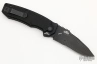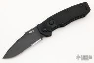 This knife designed by Grant and Gavin Hawk features the ZT feel with lighter weight. Features the ZT’s CrossFire Auto Lock for extreme lockdown security. The blade is a black matte, non reflective DLC coating, drop point with partial serration made from 154CM Stainless. The scales are anodized 6061-T6 with G-10 inlays. Adjustable pivot shaft and a removable/reversible clip. Comes with a zippered case. Has a couple light scuffs otherwise excellent condition. #XXXX (this is a factory second)