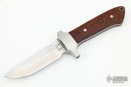This Integral Hunter by Theo Rock Nazz features a hand forged satin finished blade with integral guard and tang, .167" blade stock and 1.066" blade depth, full tang construction. The handle has brown burlap micarta scales. Comes with a zippered case and COA. New from maker!