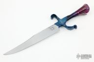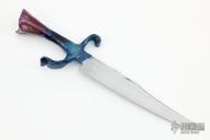 This Fighter by Theo Rock Nazz features a hand forged hand rub satin finished blade with .146" blade stock and 1.264" blade depth, hidden tang construction. The handle has a "Calla Lily" resin grip. Comes with a wooden display box and COA. New from maker!