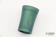 Anodized titanium shot glass with Marfione Dagger Logo. New condition.  Comes with original box.