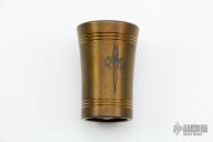 Anodized titanium shot glass with Marfione Dagger Logo. New condition. Comes with original box.