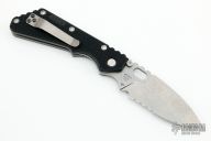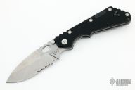 This is a Buck made Strider SNG Tarani has a stonewashed blade with notched thumbrest, thumbhole, partially serrated edge, and textured blade. The handle has textured black  scales, stainless steel liners and reversible tip up carry clip. Notching on thumbrest area and front/rear of handle provide a solid grip. Excellent condition. Comes with original box and papers. Discontinued.