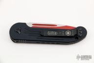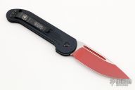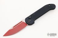 This Sith Lord LUDT auto by Microtech Knives has a red blade with a standard edge and a black aluminum frame. Stainless steel clip. Dated 05/2016 and serial number 216. Excellent condition.