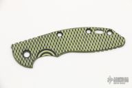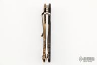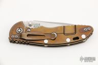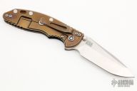 This XM-18 Spanto by Rick Hinderer Knives features a 3.5" stonewash finished blade, notched thumbrest and dual thumbstuds. The handle has a black G-10 scale, and bronzed stonewashed titanium handle/clip. Clip can be mounted for tip up or down carry. Tri-way pivot system. Nice lockup, and detent. Includes the original box, extra hardware and an extra black/yellow G-10 scale. Has a couple light scratches, otherwise excellent condition.
