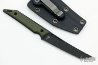 With a 3.25” blade, you'll have a nice length to cut with... But since it's only ¾” tall it will fit in your pocket very comfortably. CPM-20CV blade steel is always a great choice for a small fixed blade -- not only for its stainless properties, but for its ability to hold an edge. The form-fitting Kydex sheath in right-pocket configuration, and will be at home in your front pocket as well as on your belt -- so choose the best place for you and carry it every day! SPECIFICATIONS Blade: 0.128” Thick, CPM-20CV, Black DLC Finish Handle: 0.30" Thick, Green Coarse Texture G10 Overall Length: 6.5” Blade Length: 3.25” Weight: 1.4oz Weight w/ Sheath: 2oz Kydex Sheath with Clip, Right Pocket Carry. New condition.