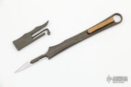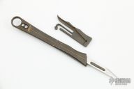 This pocket scalpel by Jackson Knife and Tool features a milled titanium body with tip up titanium clip. The sheath slides on over a #11 replacable blade. Has a couple light scuffs, otherwise excellent condition. Very cool design.
