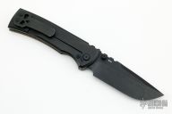 This Chaves Ultramar Redencion Tanto features a black finished blade with the Chaves logo. The handle is made up of green canvas micarta and black PVD coated titanium frame, skull pocket clip (positioned for tip up carry), and matching titanium backspacer. Blade is centered when closed, and locks up with no play. Comes in the original packaging and extra clip. Excellent condition.