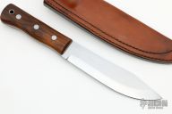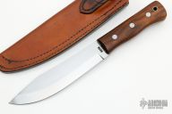 This Dangler by Dave Beck features a hand rub satin finished blade with .152" blade stock and 1.488" blade depth, full tapered tang construction. The handle has wood scales. Comes with a brown leather sheath. New from maker.