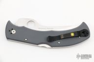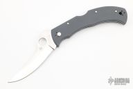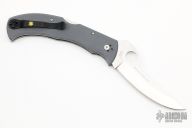 This Massad Ayoob by Spyderco features a satin finished blade with thumbhole and notched thumbrest. The handle has gray G-10 scales, stainless steel liners with a tip down reversible black stainless clip. Includes original box and papers. New condition.
