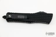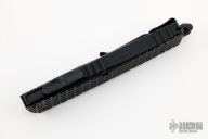 The Microtech Combat Troodon's is one of the largest dual action OTFs (Out The Front) knives available today, the Combat Troodon is the larger version of the Microtech Troodon. Hitting the ruler at almost 10 inches in total length with a 4 inch blade the combat troodon is a formidable battle ready tool, featuring CNC cut jimping on all faces of the handle and a larger slider for easy firing and retracting of the blade while wearing gloves.
