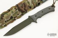 "Continuing the proud tradition of Chris Reeve Knives honoring elite military, the Reeve/Harsey collaboration - the Pacific - is the civilian version of a knife created to celebrate the 50th Anniversary of 1st Special Forces Group. Based in Ft. Lewis, WA, 1st Group's theatre of operations is Asia and the Pacific, so the name Pacific has been chosen to honor the home and work place of these fine soldiers." This knife has a clip point OD Green blade with .224" blade stock and 1.405" blade depth, full tang construction with canvas micarta scales. Comes with camo nylon spec-ops sheath. Comes with original box and papers dated June 29, 2022.  New condition.