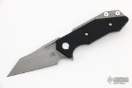 This Half Track from Hinderer Knives features a working finished Magnacut blade with fullers, notched thumbrest and flipper. The handle has a stonewash finished titanium frame with a black G-10 scale. Titanium clip is positioned for tip up, right hand carry. Comes with original box and extra hardware. New condition.